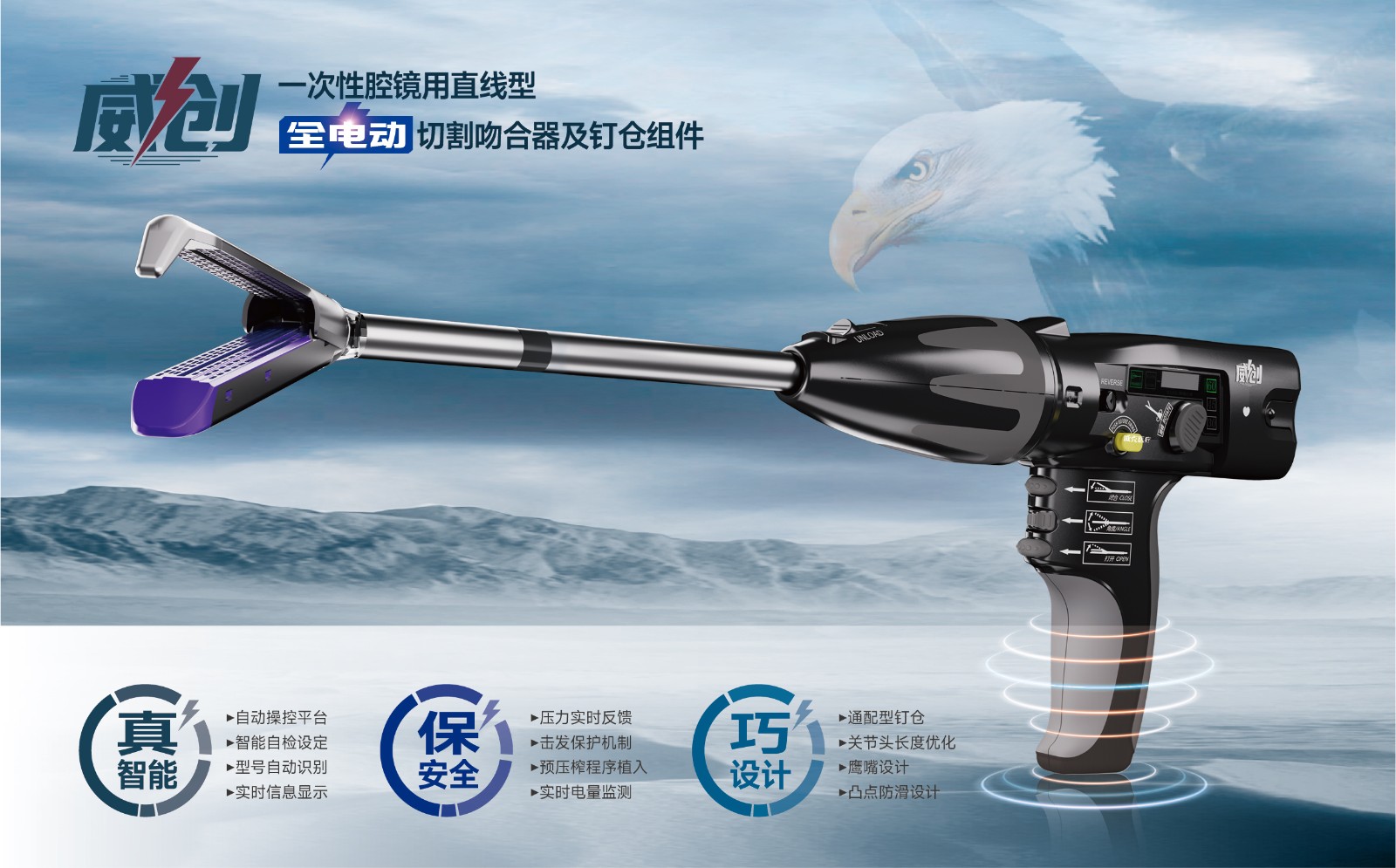 “威創(chuàng)”是一款全球獨(dú)創(chuàng)的具有自主知識(shí)產(chǎn)權(quán)的全電動(dòng)智能腔鏡切割吻合器。它搭載了全新智能芯片,手術(shù)時(shí)可以實(shí)時(shí)反饋擊發(fā)阻力,使術(shù)者的操作更加游刃有余。同時(shí),“威創(chuàng)”還具備智能自檢設(shè)定、型號(hào)自動(dòng)識(shí)別和實(shí)時(shí)信息顯示等功能,為術(shù)者帶來(lái)了全新的人機(jī)交互體驗(yàn)。在安全性方面,“威創(chuàng)”具備擊發(fā)保護(hù)機(jī)制和預(yù)壓榨程序植入等卓越的安全保護(hù)機(jī)制,這使得切割吻合和成釘效果更加平穩(wěn),并大大提高了手術(shù)的安全性和效率。